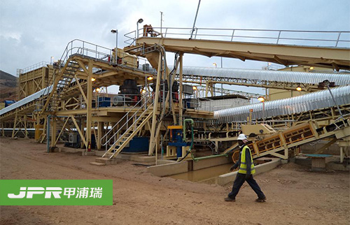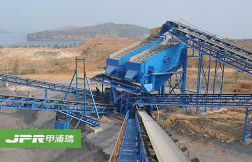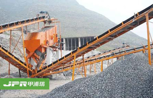 碎石生產線主要由振動給料機、顎式破碎機、反擊式破碎機、振動篩、膠帶輸送機、集中電控等設備組成。為滿足客戶不同的加工需要,可配備圓錐式破碎機、除塵 設備等。大塊石料經料倉由振動給料機均勻地送進鄂式破碎機進行粗碎,粗碎后的石料由膠帶輸送機送到反擊式破碎機進行進一步破碎;細碎后的石料由膠帶輸送機 送進振動篩進行篩分,篩分出幾種不同規格的石子,滿足粒度要求的石子由成品膠帶輸送機送往成品料堆;不滿足粒度要求的石子由膠帶輸送機返料送到反擊式破碎 機進行再次破碎,形成閉路多次循環。成品粒度可按照用戶的需求進行組合和分級,為保護環境,可配備輔助的除塵設備。