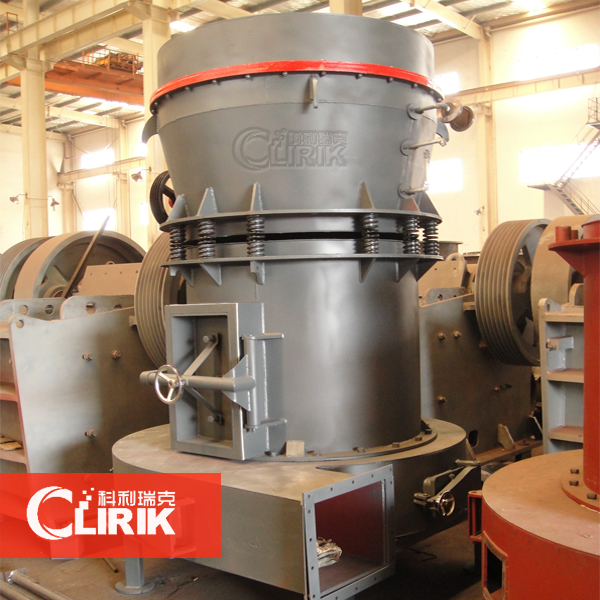 物料經顎式破碎機破碎成小于10mm的物料,經斗式提升機提升到儲料斗,再由給料機定量送入主機腔進行研磨,主機腔內安裝在轉盤上的磨輥繞中心軸旋轉,磨輥與磨輥銷之間存在很大的活動間隙,在離心力的作用下磨輥水平向外擺動,從而使磨輥壓緊磨環,磨輥同時繞磨輥銷自轉。物料通過磨輥與磨環之間的間隙,因磨輥的滾碾而達到粉碎和研磨作用,磨輥分為4層布置,物料通過第一層磨輥與磨環間為一次粉碎,接著通過第二、三、四層為二次、三次、四次粉碎,因此,物料得到充分的粉碎研磨,得到的產品細度細。磨碎的粉末由于重力作用落到底盤上,并在鼓風機的氣流作用下被吹到主機上方的分級機進行分篩,細度過粗者仍落入主機內重磨,細度合乎規格者隨風流入脈沖除塵器,收集后經卸料閥排出即為成品,凈化后的氣流經脈沖除塵器上方余風管流入鼓風機,風路是循環的,除鼓風機至研磨室為正壓外,其余管路內氣流均在負壓下流動,室內衛生條件較好。由于物料所含水分在研磨時受熱蒸發為氣體,管路中各法蘭接合處、進料口等處泄入的氣體導致循環風路中的風量增加,這些增加的風量經鼓風機和主機之間的風箱接口排入大氣。